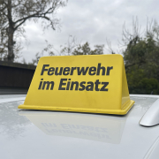 —> Um sich im Straßenverkehr kenntlich zu machen, verwenden viele Feuerwehrangehörige einen magnetischen Dachaufsetzer mit der Aufschrift „Feuerwehr im Einsatz“. Dieser signalisiert anderen Verkehrsteilnehmern, dass sich der Fahrer auf dem Weg zu einem Einsatz befindet – oft auch in Kombination mit der eingeschalteten Warnblinkanlage.